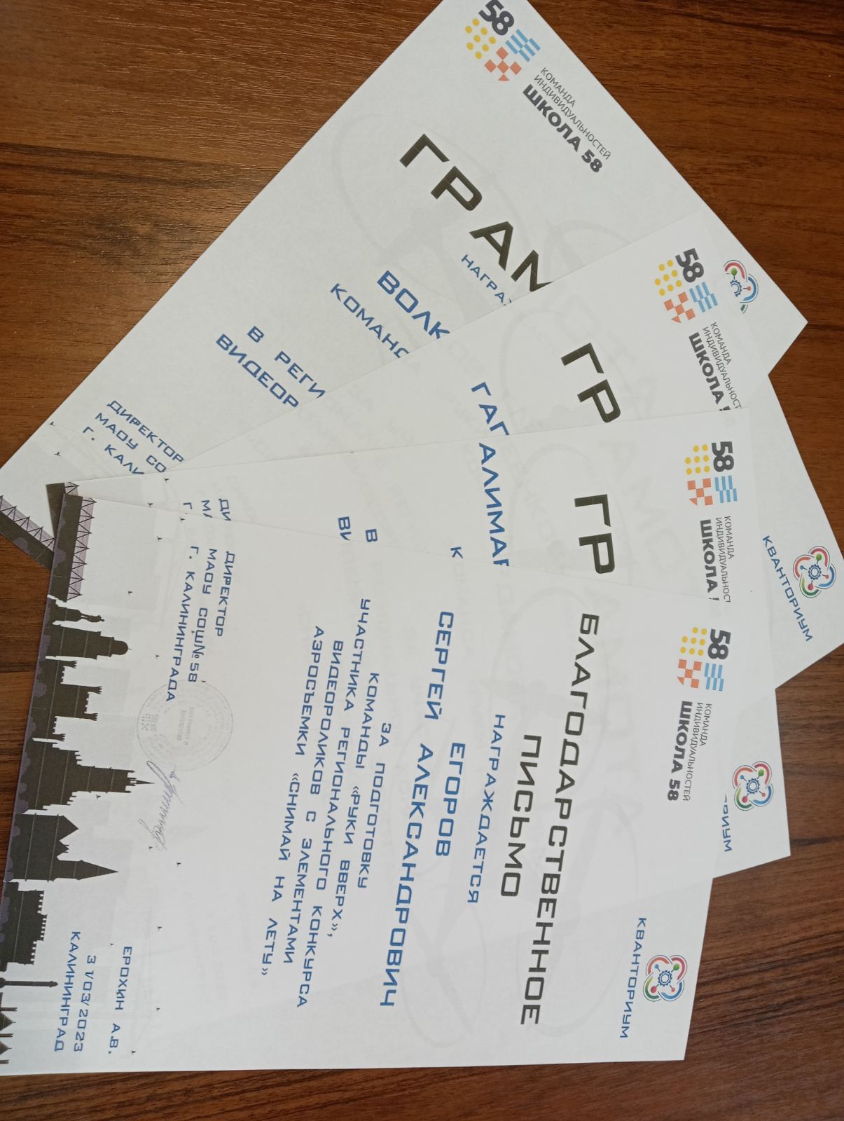 Грамоты и благодарственное письмо за участие в региональном конкурсе видеороликов "Снимай на лету"