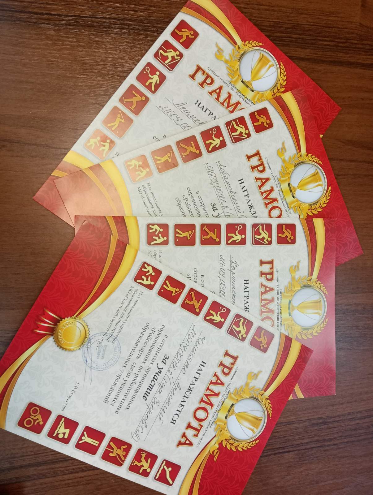 Грамоты за участие в открытых соревнованиях по робототехнике "Робостарт"